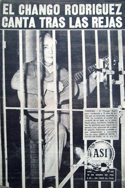 Un año después, como parte de las gestiones para su liberación, Así volvió a visitar al Chango. Una foto cubre toda la portada de la revista de enero de 1966. “Hasta ahora resultaron inútiles las gestiones para su liberación o la reducción de su pena. El popular folclorista cordobés sigue componiendo y ejecutando tras las rejas”, dice la bajada. En cuatro años, Rodríguez compuso más de 70, formó grupos, se casó, pasó por dos penales. Y sufrió un infarto en cada uno. El primero, cuando se enteró de la sentencia. El segundo, cuando lo trasladaron del pabellón de “Conducta” a la celda de castigo.